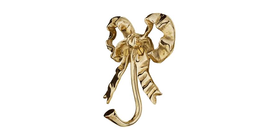 The Vlora hook is very unique with its elegant bow. Vlora is sand cast in brass, but it is also available with chrome or nickel finish.
