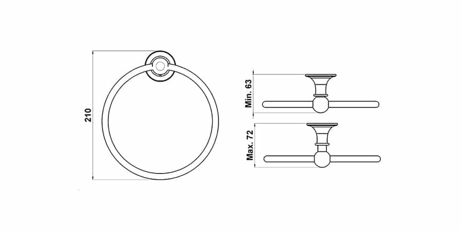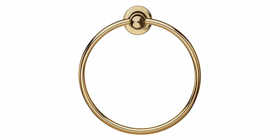 Okrągły wieszak na ręcznik z mosiądzu. Oferowany, oprócz mosiądzu w wykończeniu chromowanym.