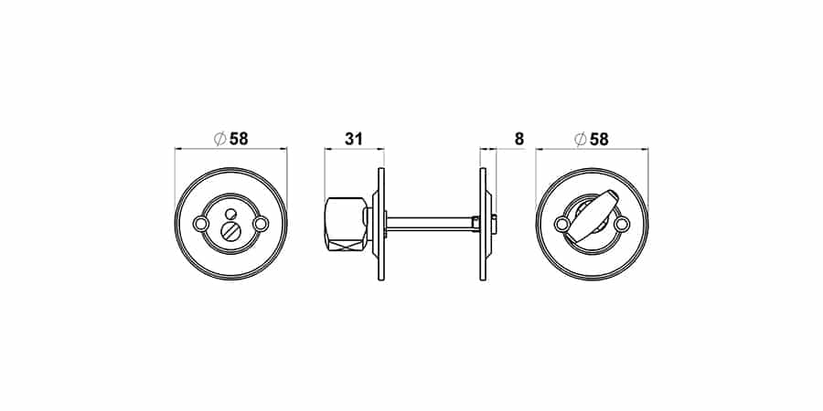Den anden side af rosetten har en sikkerhedslås, der gør det muligt at åbne døren udefra i nødsituationer. Dette er især vigtigt i tilfælde af hjem med små børn.