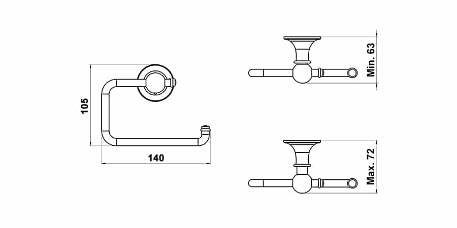 Toiletrulleholder i messing. Tilbydes udover messing i krom eller nikkel overflade.